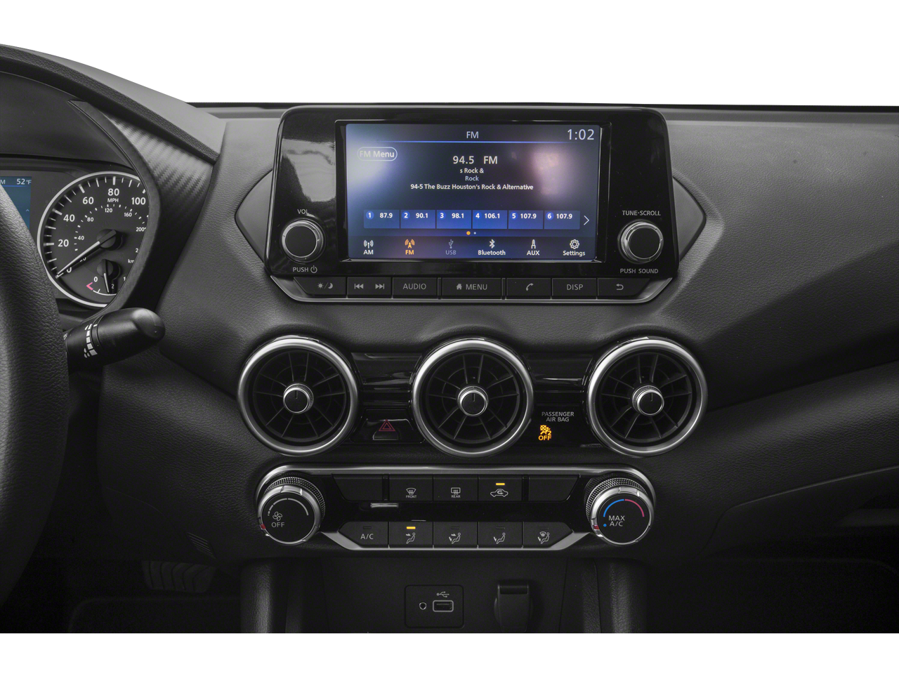 - Radio: AM/FM w/RDS/MP3/Aux-In -inc: 6 speakers, 8" color display w/multi-touch control, streaming audio via Bluetooth, Bluetooth hands-free phone system, hands-free text messaging assistant, Siri eyes-free, Google Assistant voice recognition w/Apple CarPlay and Android Auto, NissanConnect, (1) front USB connection port (type A) for iPod interface and other compatible devices, (1) additional front USB (type C) and (1) charge-only USB (type A) center console and SiriusXM radio